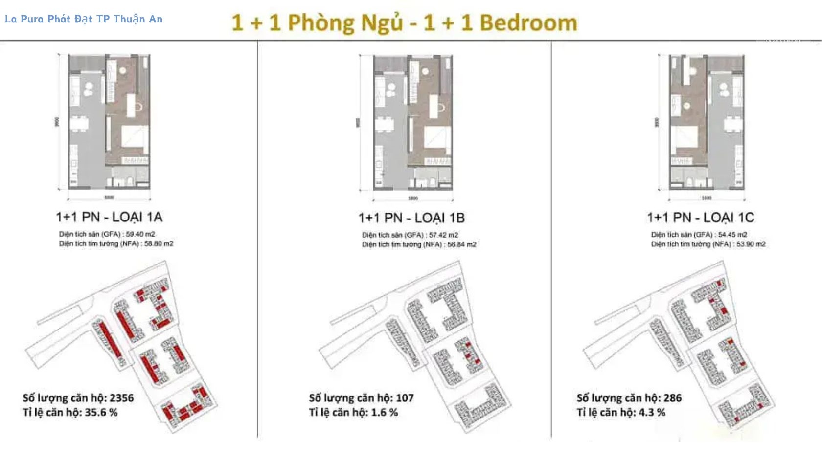 + 1141 căn 1 phòng ngủ 1WC diện tích 45 – 55m2 |