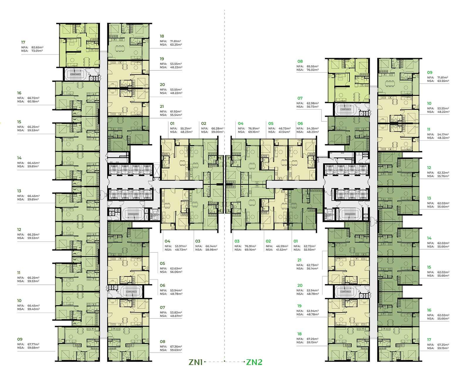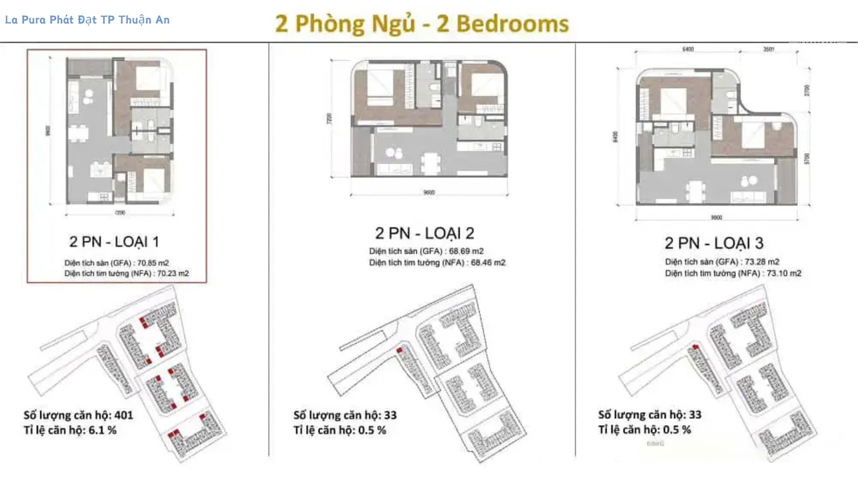 Diện tích: 66.5m2 – 76.9m2
