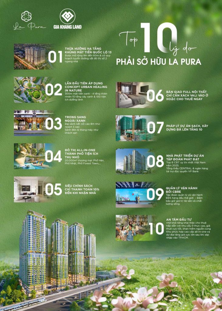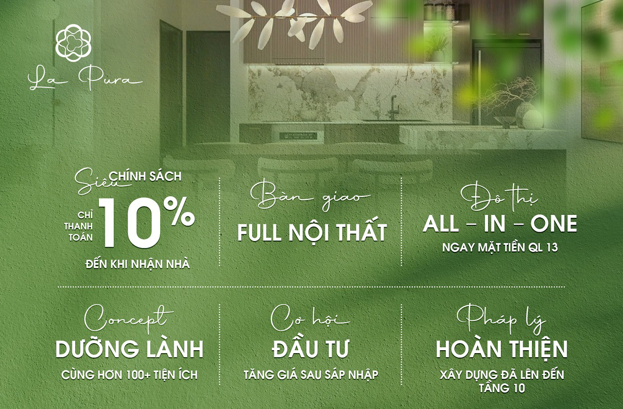 La Pura Bình Dương được quy hoạch, phát triển sẽ trở thành một khu phức hợp khép kín hiện đại đa dạng công năng và chính là biểu tượng kiến trúc độc đáo, vượt thời gian. Các sản phẩm dự án nổi bật, thu hút khách hàng nhờ phong cách ấn tượng đã giúp hình thành không gian sống tiện nghi, cao cấp và gần gũi không gian sống xanh nhất.